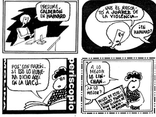 Una vez aclimatado en Harvard, Felipe Calderón no perdió tiempo en aprovechar su estancia en aquella institución para ufanarse una vez más de haber “salvado” a México, citando como ejemplo a la ciudad mártir que de ser en otros tiempos una ciudad próspera y pujante terminó convertida en la ciudad más violenta del mundo gracias a la “guerra” iniciada por Felipe Calderón en contra del crimen organizado sacando al Ejército mexicano de los cuarteles para tales efectos. Naturalmente, en esa desdichada ciudad no tardaron en desmentir al infeliz autoproclamado “salvador” de México: